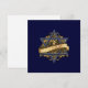 Elegante Estrela Judaica de David (Magen David) símbolo tradicional de hexagrama azul e branco contra um fundo de ouro e barroco negro e flúor com fita de ouro e desejos de cartões de natal para um Feliz Chanucá. Arte da artista Margaret Loftin Whiting.