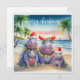 Cartão De Festividades Hawaii Hippo celebrating Christmas at the beach