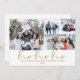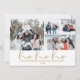 Um cartão de festas elegante com 4 fotos especiais, seu nome de família e data definidos na tipografia moderna clássica com uma mensagem de Natal com script chic. Projetado por Thisnotme©
