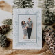 O design moderno e elegante de cartão de feriado pela Redwood & Vine apresenta sua foto vertical favorita emoldurada por botânicos de inverno chiques que se destacam nas bordas. Personalize com a sua mensagem personalizada (mostrada com "saudações da estação") e o(s) seu(s) nome(s) em caracteres clássicos, na moda e itálicos.