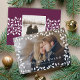 Um simples e elegante cartão com fotos de férias enquadra sua foto horizontal com uma borda de folhas brancas e bagas. Personalize com um Natal ou cartões de natal (mostrado com "torcida de férias") e seus nomes embaixo. Adicione uma foto adicional ao fundo de um fundo vermelho de amora festiva com uma faixa de folhagem sagrada correspondente.
