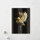 Steampunk, antigo, ouro, beija-flor mecânica com engrenagens de latão e chave prateada em fundo castanho listrado. Pássaro Dourado.