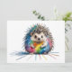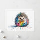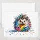 Ein freundlicher Igel in bunten Farben, eine kindliche Zeichnung eines Igels, mit Tusche und Kreide, gekleckst und geschmierte ist die Farben als Stil und Effekt des lustigen Bildes.