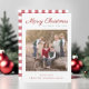 Cartão de Feriado de Natal de Script Vermelho de Xadrez Vermelha Elegante Personalizado.