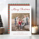 Cartão de Férias de Natal Striped com Script Moderno Elegante Personalizado