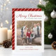 Cartão de Feriado de Natal de Script Moderno Elegante Personalizado Vermelho Stripes Vermelho de Fios de Natal.