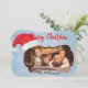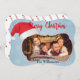 Uma design de cartão de Natal com fotos da sua família destacada por um quadro de na moda vestindo um chapéu de Papai Noel. Seus nomes perto do fundo.