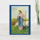 Saudações de Páscoa em forma de cartão antigo mostrando Jesus como pastor com seu cajado e cordeiros