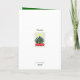 Anjo Festivo vestido com flores e um halo de estrela dourada e faixa de Joy, com luzes coloridas de árvores de Natal no fundo. Deixe o cartão de dentro de mensagem ou personalize. Personalize com seu nome de família. A parte de trás tem trabalho de arte menor da antiga árvore de Natal verde com estrela amarela, Peace. Fotografia original, Trabalho de arte, Verse Design © TamiraZDesign.