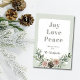 Cartão De Festividades Joy Love Peace Christmas Roses Pine Cone