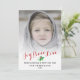 Celebre a temporada com este cartão com fotos de Férias com as palavras JOY PEACE LOVE em uma bela letra de roteiro e um primo de festivo sagrado. Personalize adicionando sua foto, saudação personalizada, nome(s) e ano.