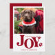 Espalhe a JOY neste feriado com este cartão de natal de animais de estimação moderno e na moda, perfeito para amantes de cães e de gatos! Este cartão de Natal de estimação apresenta sua foto favorita com a palavra JOY em um divertido estilo retro-tipográfico moderno e uma impressão de pata realista. Adicione a sua foto e a sua mensagem pessoal a este elegante design de fotos de animais de estimação de feriado e faça dele seu próprio cartão de feriado original. DICA FOTO: Pré-recorte a foto ANTES de carregar e/ou usar a ferramenta CROP na seção PERSONALIZE para ajustar a posição na área do modelo. Para obter ajuda com design ou personalização ou transferir design para outro produto, entre em contato com o designer por meio do botão de bate-papo. COPYRIGHT © 2022 Judy Burrows, Black Dog Art - Todos Os Direitos Reservados. Cartão de Férias de Cão de Impressão Personalizado Pet Photo Red Paw