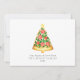 Ilustração de uma fatia de pizza em forma de árvore de Natal com toques vermelhos e verdes revestidos com uma estrela. Personalize o nome e o ano.