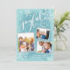 Espalhe alegria e felicidade este ano com um cartão que pop! Apresentando um guião caprichoso moderno de caligrafia que diz "alegre" num fundo azul texturizado e acentuado com flocos de neve brancos e queda de neve. Personalize suas fotos, seus nomes de família e nomes individuais. No verso, há um padrão de flocos de neve brancos e estrelas que corresponde à frente. quadros de folhas de papel Silver falsos e destaca suas fotos