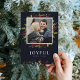 cartões com fotos de feriado personalizados com barato simples para personalização. Este design festivo apresenta uma elegante borda floral de aquarelas de folhas sagradas e flores de poinsettia em cores vermelha, verde e burgundy sobre fundo azul marinho. Personalize-o com suas fotos e texto personalizado. O verso tem um cartões de natal personalizado ou usa o espaço para adicionar fotos adicionais. Use as ferramentas de design para escolher qualquer cor de fundo, editar as fontes e cores do texto, carregar mais fotos e criar um design de cartão com fotos de feriado.