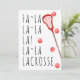 Saudações de Natal com tema de Lacrosse, com design de palitos de lax e linhagem engraçada. Editar texto para personalizar facilmente.
