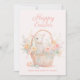 Cartão de saudação de "Felz pascoa" com um pequeno carneiro num cesto de Páscoa rodeado de flores de cor-de-rosa macia e de cor de pêssego. O texto, a fonte, o tamanho e a cor da fonte são completamente personalizáveis, de modo que este cartão pode ser projetado de acordo com as suas necessidades.