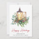 Cartão De Festividades Lanterna de Natal com Folhagem Aquarela