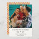 Lar para as festas. Este cartão de Natal moderno e simples apresenta sua foto favorita ao lado de uma mensagem personalizada de máquina de escrever, bem como um coração caprichoso e uma ilustração de ramo botânico. No verso, há um padrão xadrez laranja e vermelho quente.
