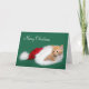 Um gato de mesa laranja em Santa Hat quer um cartão de Natal feliz. O texto pode ser facilmente removido ou alterado
