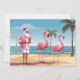 Cartão De Festividades Legal Yule Papais noeis e Flamingos Praia Natal