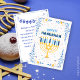Celebre o Festival das Luzes com este lindo cartão azul de feriado do Chanucá! Personalize-o com uma mensagem personalizada para tornar suas saudações únicas e sinceras. Com um design elegante e tons azuis ricos, este cartão na moda é perfeito para enviar desejos calorosos à família e aos amigos. Adicione um toque especial às suas celebrações de Chanucá com um cartão significativo e personalizado que captura a alegria da temporada.