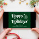 Cartão de Natal corporativo verde para seus clientes, clientes, funcionários, afiliados, etc., com "Felizes Feriados" em tipografia branca na moda, logotipo de sua empresa e uma saudação sazonal (obrigado para você, de todos nós etc.) e nome comercial em uma simples tipografia branca moderna, insira seu endereço de site na parte traseira para criar um código QR digitalizável que seus clientes podem digitalizar para se conectar facilmente às suas plataformas on-line.