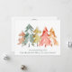 Um cartão de cartões de natal corporativo elegante para sua empresa, com uma bela abstrato de aquarela de pinheiros em verde-mudo, vermelho, ouro e laranja, uma saudação sazonal personalizável e o nome de sua empresa. No verso, faça o upload do seu logotipo, insira o endereço do seu site para criar um código QR que seus clientes podem verificar para se conectar facilmente às suas plataformas on-line e personalize uma mensagem para seus clientes.