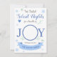 Trocamos noites silenciosas por um monte de alegria. A fotografia é personalizável junto com o nome da família. O design é bonito e azul, com pequenos florais de inverno ilustrados e flocos de neve azuis. Parabéns no seu pequeno pacote de alegria.