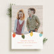 Design de cartão de feriado moderno brilhante e colorido com uma ilustração retrógrada das luzes de Natal que também pode ser personalizada com sua foto e texto. Foto de Emma Goldsmith no Unsplash