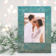 Esta carta moderna apresenta um fundo aqua rico com luzes de fada douradas elegantes e sua foto pessoal favorita no centro.
