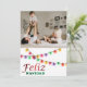 Um cartão com fotos com texto que diz "Feliz Navidad" com luzes coloridas de cordas. A parte de trás apresenta as mesmas luzes festivas coloridas. Adicione uma mensagem especial de feriado na parte traseira do design.