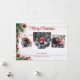 Saudações de Feliz Natal e campos de texto com três fotos em madeira de celeiro branco rústico, serpente e ornamentos vermelhos.