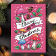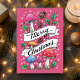 Celebre a temporada com uma reviravolta única! Este cartão de feriado cor-de-rosa contém cogumelos brancos, pinecones, e prigos sagrados em volta de uma bandeira festiva de "Feliz Natal". Perfeito para amantes da natureza, entusiastas dos cogumelos, e qualquer um que desfrute de um toque de magia da floresta em seus Cartões de natal. Saia desse feriado com uma carta que combina alegria festiva com uma vibração da floresta encantada e úmida!