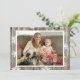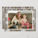 Envie sua foto de família de Natal para este cartão de Natal com fundo de madeira rústica desgastada com flocos de neve brancos.