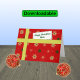 Cartões de natal pessoais para sua mãe. A carta tem a aparência de um pacote com um padrão estilizado de flocos de neve em ouro e cores verdes em um fundo vermelho. O pacote está amarrado com uma fita ouro, e tem uma etiqueta de presente com a mensagem "Feliz Natal Mãe". Dentro, o texto é "Desejar um Feliz Natal e um Feliz ano novo" ou você pode mudar isso para sua preferência. Cartões personalizados estão disponíveis para muito mais relações.