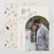 Cartão de Feriado de Natal de Boho Arch 1 com Script Simples. As costas têm um padrão de flor silvestre. Clique no botão personalizar para personalizar este design com seus detalhes.