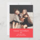 Este cartão de feriado simples e na moda diz "feriados felizes" em texto de máquina de escrever branca, com um galho botânico tradicional e sua foto pessoal favorita. O fundo é vermelho, com um padrão de gingham vermelho correspondente no verso.