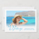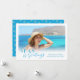 Do Natal na praia às suas férias costeiras favoritas, este cartão "Seas & Saudações" é uma maneira divertida de desejar aos amigos e à família um Feliz Natal tropical! Apresenta a sua fotografia de praia favorita, saudação personalizada e nome. A parte de trás do cartão tem um padrão de estrelas-do-mar sobre um fundo azul aqua.