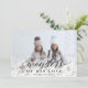 O cartão com fotos de feriado elegante apresenta uma foto orientada para a paisagem com cheio, com uma cobertura de luz bokeh para um aspecto festivo e borbulhante. "Maravilhas do seu amor" está sobreposto em escrita negra e letras de bloqueio, com o(s) seu(s) nome(s) e o ano abaixo. Adicione duas fotos adicionais ao verso, juntamente com uma mensagem personalizada, em um fundo botânico neutro e padronizado.