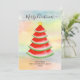Estes cartões de Natal divertidos são decorados com uma melancia vermelha, árvore de Natal, e dizem Feliz Natal na tipografia de na moda num fundo de aquarela colorido. Facilmente personalizável. Original Watercolor © Michele Davies.