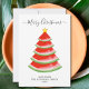Estes cartões de Natal divertidos são decorados com uma melancia de melancia vermelha na árvore de Natal e dizem Feliz Natal na tipografia de na moda. Facilmente personalizável. Original Watercolor © Michele Davies.