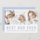Cartão de dia de os pais com três fotos personalizadas e texto de fonte moderno e azul "Melhor pai de sempre", com a mensagem abaixo na frente. Cor azul clara ou personalizada de volta. Alterar cores e fontes, mover e redimensionar elementos na ferramenta design.