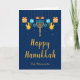 Hanukkah party card with a menorah and sufganiyots. The words can be changed to suit your own details or requirements
