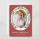 Este cartão de Natal de 4 fotos apresenta um quadro fotográfico oval adornado com verde de inverno de eterno e bagas vermelhas em um fundo vermelho escuro. O verso deste cartão de feriado clássico oferece espaço para 3 fotos adicionais. Personalize adicionando suas fotos familiares favoritas, nomes de família e uma mensagem pessoal.