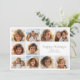 Frente - Um modelo de 10 fotos em uma grade simples com uma borda branca. Fundo branco com uma fonte sans serif para a saudação. O tipo está em uma cinza sem áudio. Fundo - Cinza com uma fina linha de arte Arch zen. Todas as cores podem ser alteradas na área design avançada.
