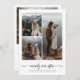 Celebre sua primeira temporada de festas como recém-casados com um Cartões de foto de Natal preto-e-branco na moda que conta sua história de amor através de quatro imagens sem hemorragias, cuidadosamente organizadas. Projetado com uma caligrafia elegante e um toque de guião reluzente, este cartão captura a alegria de dizer "Merrily Ever After." Quer você esteja marcando seu primeiro Natal como um casal casado ou compartilhando suas notícias de casamento com pessoas amadas perto e longe, este layout oferece um design limpo e moderno que é barato e eterno. É perfeito para aqueles que procuram um cartão de noivado que seja pessoal, sincero e exclusivamente seu. Compartilhe seu amor, seus sorrisos, e sua alegre e eterna felicidade com este cartão com fotos romântico recém-casado — uma bela maneira de enviar calor e gratidão nesta temporada.