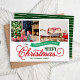Barato Cartões de foto de Natal impressos personalizados com um modelo DIY simples para personalização. Esta design de diversão apresenta tipografia química em cores verdes e vermelhas. A mensagem dizia "Desejar-te um Natal Muito Feliz". O modelo tem espaço para duas fotos da família. Use as ferramentas de design para editar as fontes e as cores. O lado inverso tem um padrão de distribuição de coordenação ou usa o espaço para adicionar mais fotos e texto.