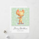 Cartão de Natal personalizado e bonito com ilustração de um rato doce tocando a flauta sobre um fundo com flocos de neve. Ilustrada e projetada por Patricia Alvarez.