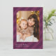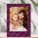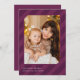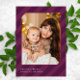 O cartão de Natal na moda apresenta uma fotografia e listras clássicas num impressão novo e ousado, com cores roxas e ameixas de Natal modernas, para um cartão de saudação de Natal simplesmente elegante. Personalize este cartão elegante com a sua fotografia da família favorita e o seu nome personalizado com uma saudação sazonal editável.